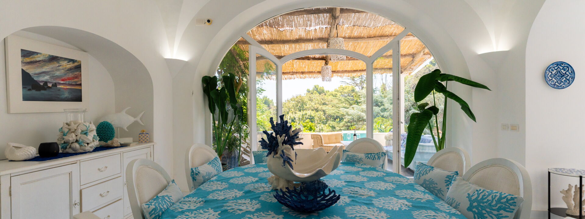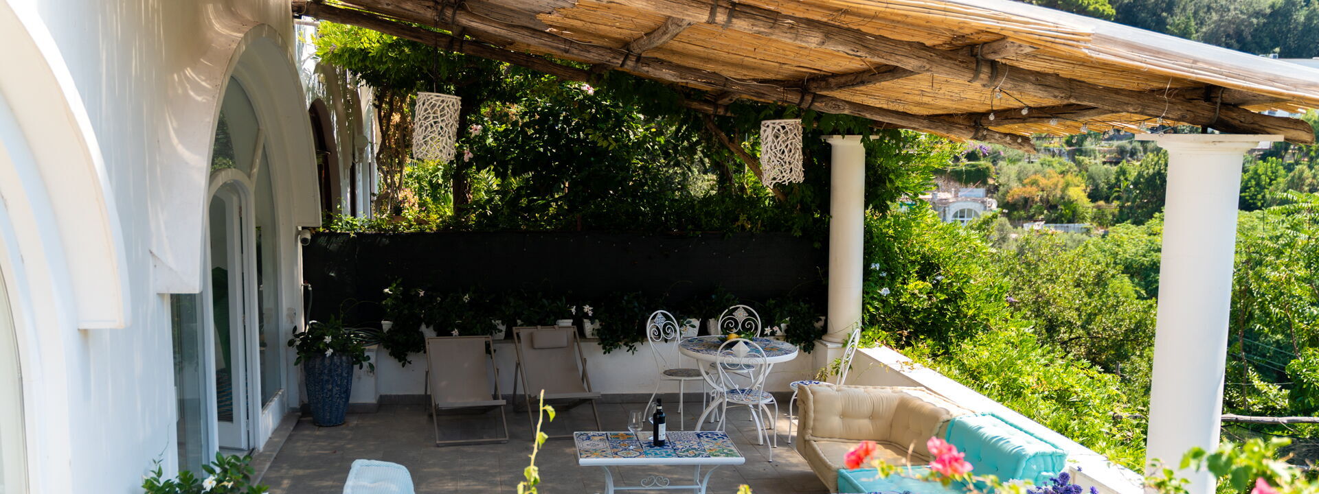 One of the highlights of VILLA LUMINIS CAPRI is its magnificent outdoor terrace. Covered by a charming natural pergola, this space is perfect for enjoying Capri’s outdoor lifestyle.