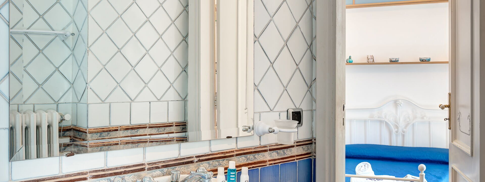 Directly behind the staircase you will find a small entrance to a stairwell that takes you up the historic main tower of the villa. Sharply spiraling up three levels you will arrive at the rooftop terrace where the most magnificent views of the Sorrento and Amalfi coastlines can be savoured simultaneously. Perfectly furnished with an array of outdoor sunbeds to bask in the summer sun, as you gaze out and lose yourself in the beauty of the Mediterranean coast.