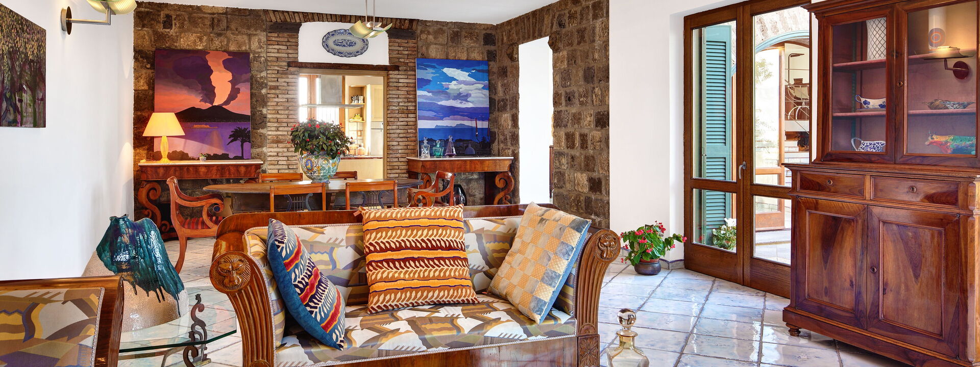 Villa Vesuvio is located on the hillside of the Sorrento Peninsula, only 800m from the quaint village of Sant’Agata. Spacious and surrounded by fruit trees and olive groves, this luxury villa blends antique Italian décor with contemporary design and enjoys one of the most spectacular views across the Bay of Naples to Mount Vesuvius.