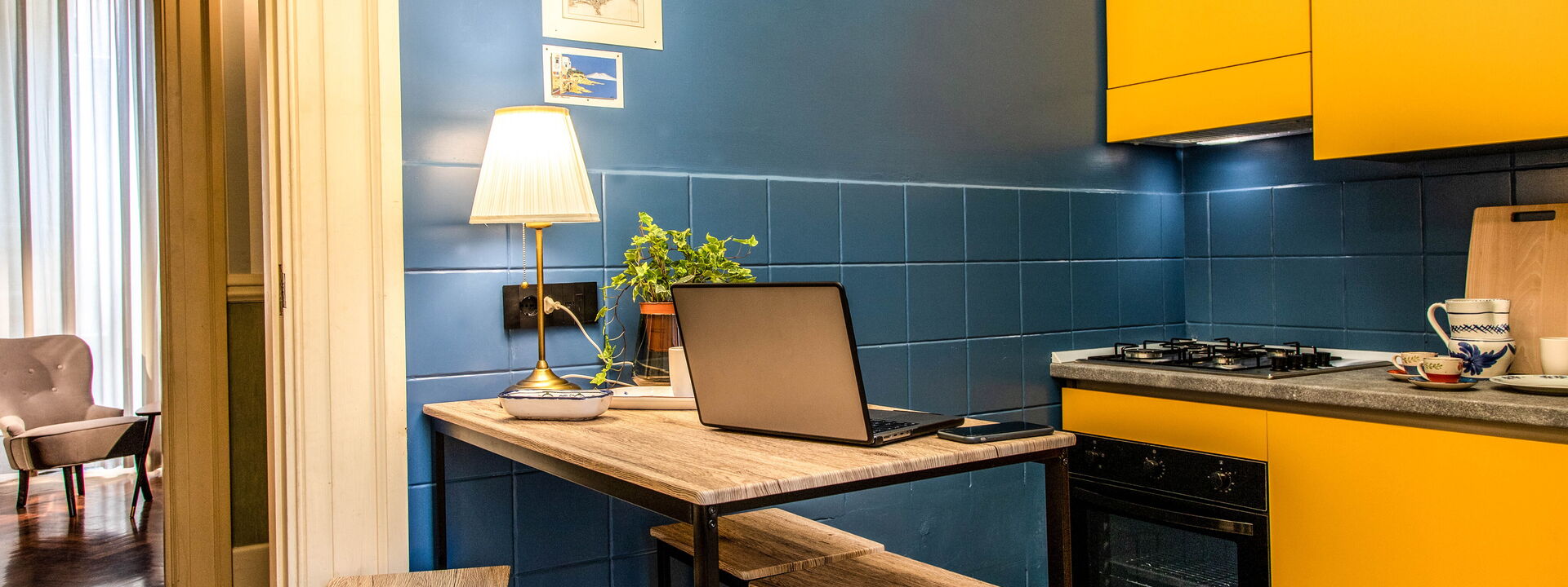 The highlight of Tribunali Luxury Suite is the living and dining space, grandeur in size and with lavish interiors thanks to the original wall fresco and pieces of period furniture. Down a vestibule hallway you will reach the kitchen and main sleeping quarters of the apartment.