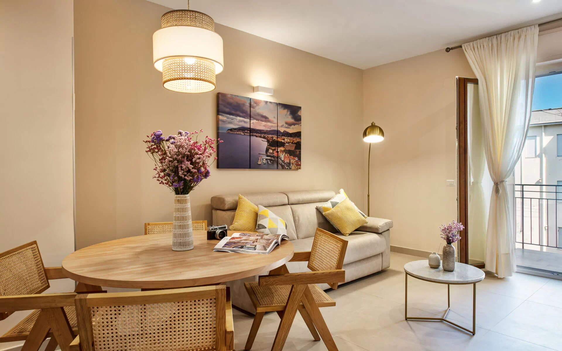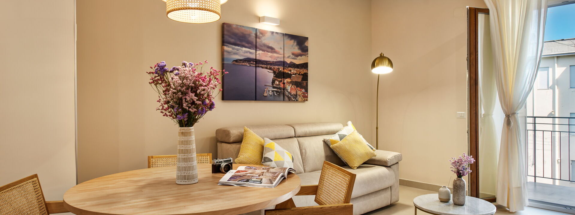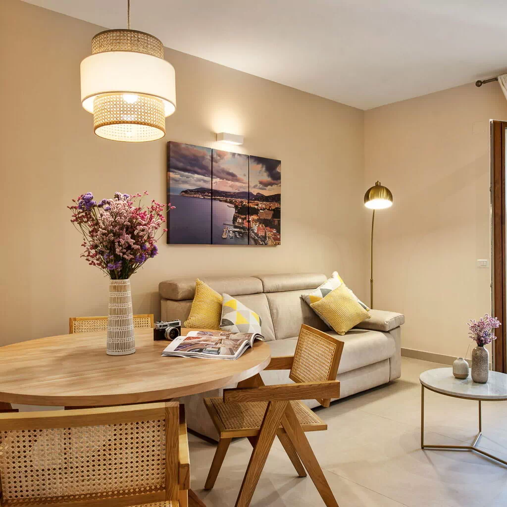 From here, you can immerse yourself in the vibrant atmosphere of Sorrento, explore the characteristic alleys, go shopping, or simply enjoy an evening stroll through the illuminated streets. The apartment is located on the 4th floor with lift access and has been carefully designed to ensure maximum comfort.