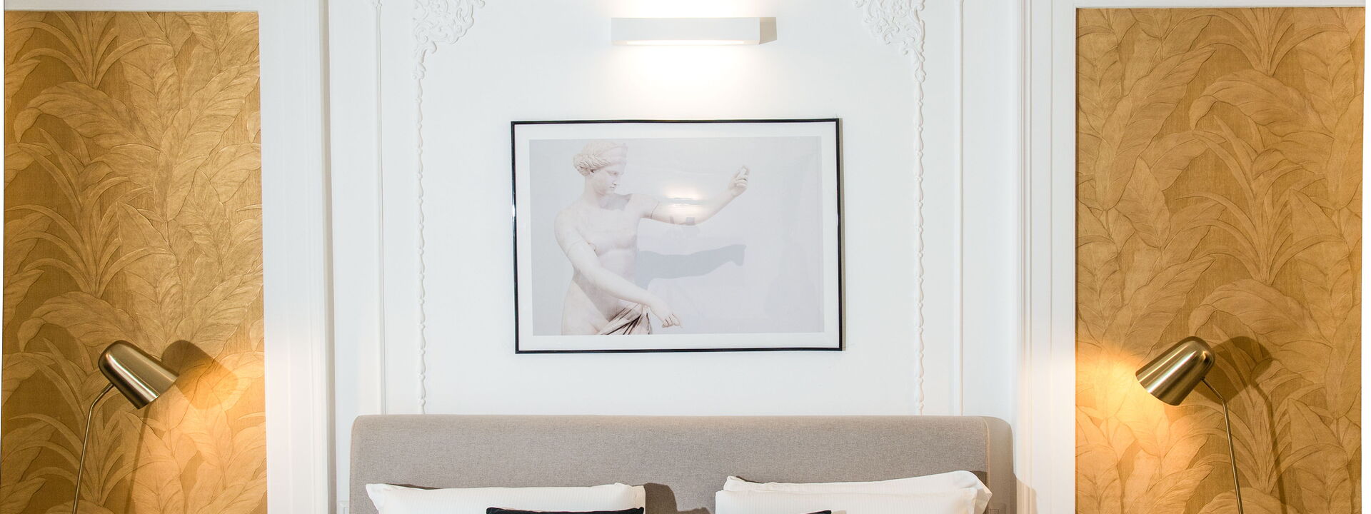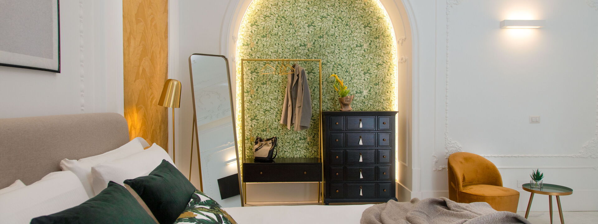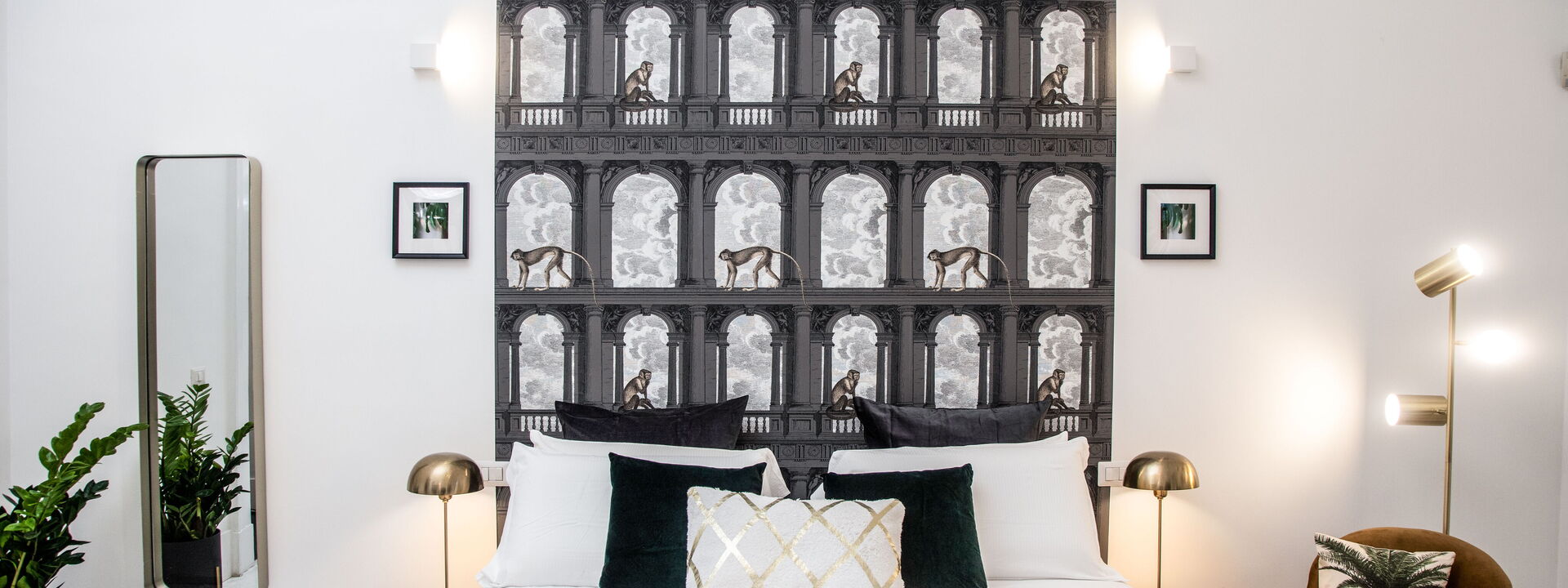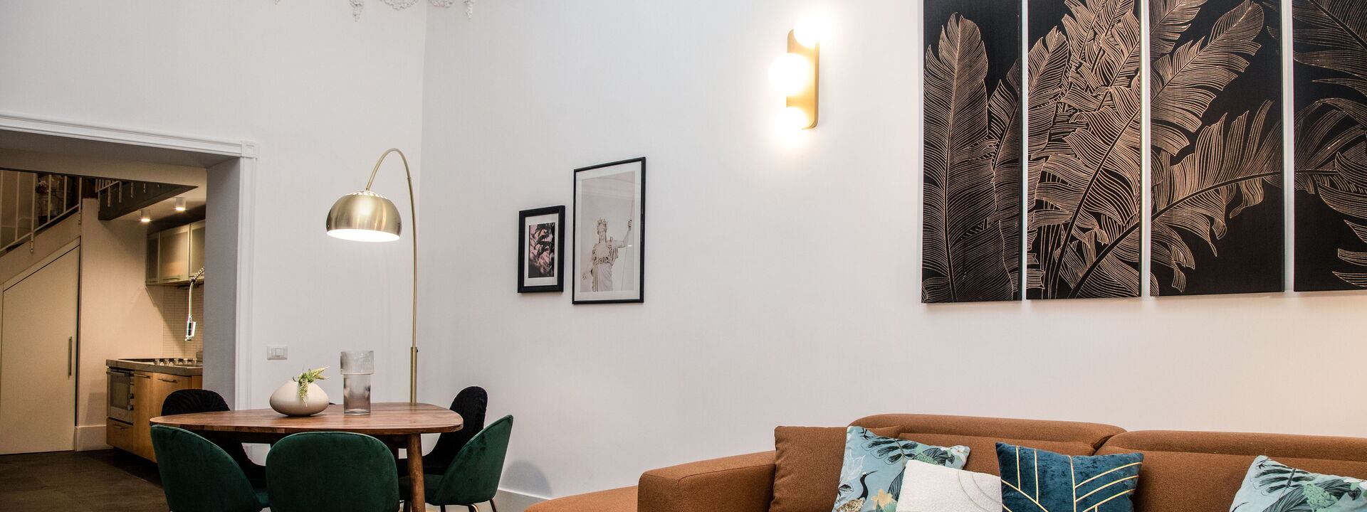 The bedrooms are spacious, bolstered by the high ceilings, and have been superbly designed to create a certain level of opulence with the use of diverse fabrics including wood, steel and velvet. The discreet green tropical theme displayed through both natural and artistic elements adds a calming feel in contrast to the busy metropolis of one of Italy’s most densely populated cities, only steps away.