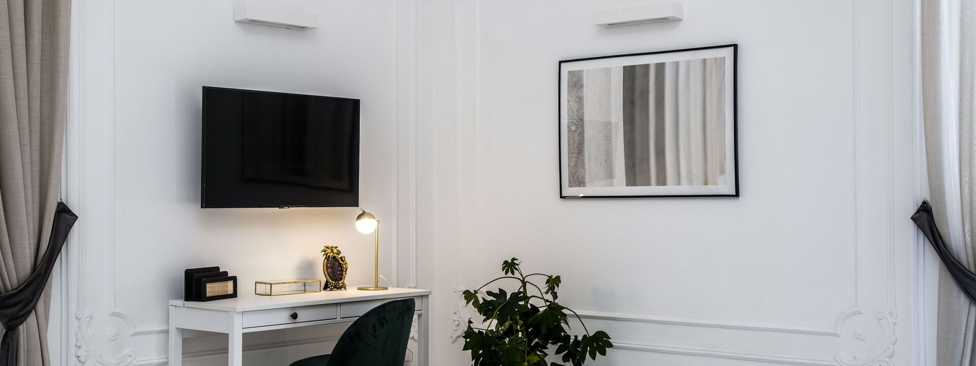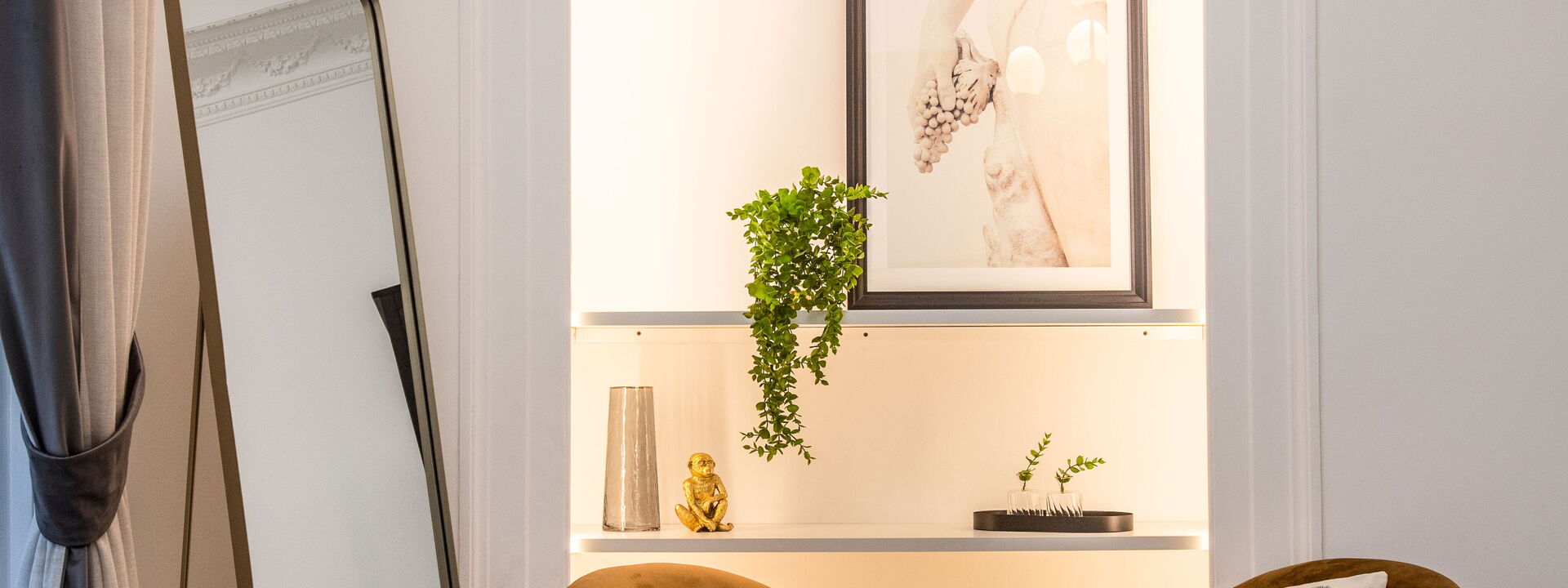 The Marble House is located on the third floor of a historical residential building with porter and lift access. As the name suggests, the apartment boasts polished marble floors, high ceilings, Juliette balconies and other timeless architectural features that have been given prominence with the recent refurbishment.