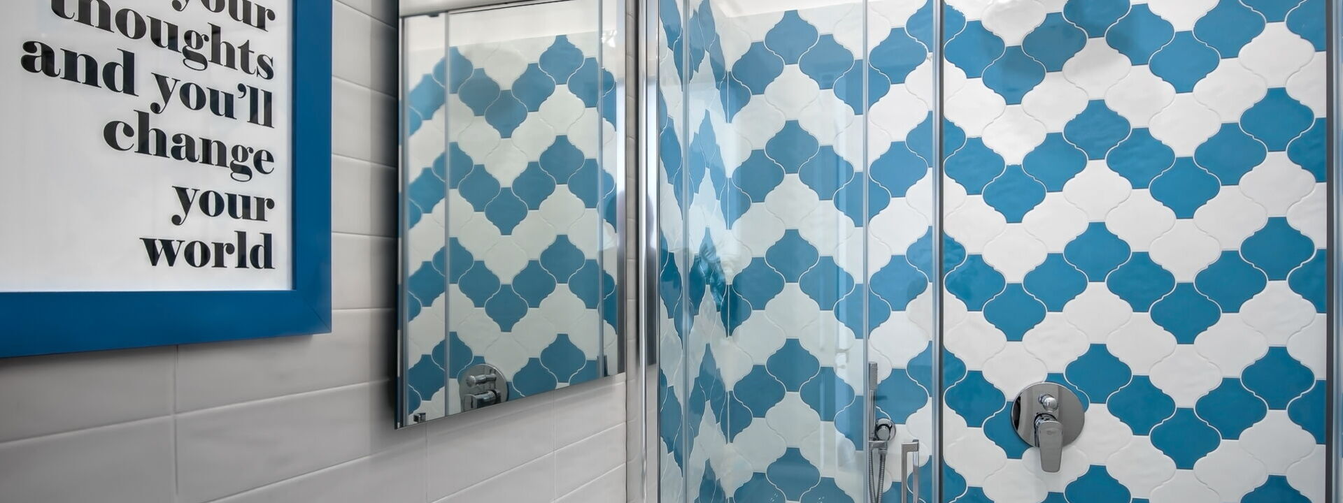 The separate bathrooms feature a spacious shower fitted with adjustable rain and handheld showerheads, modern design WC and wash basin.