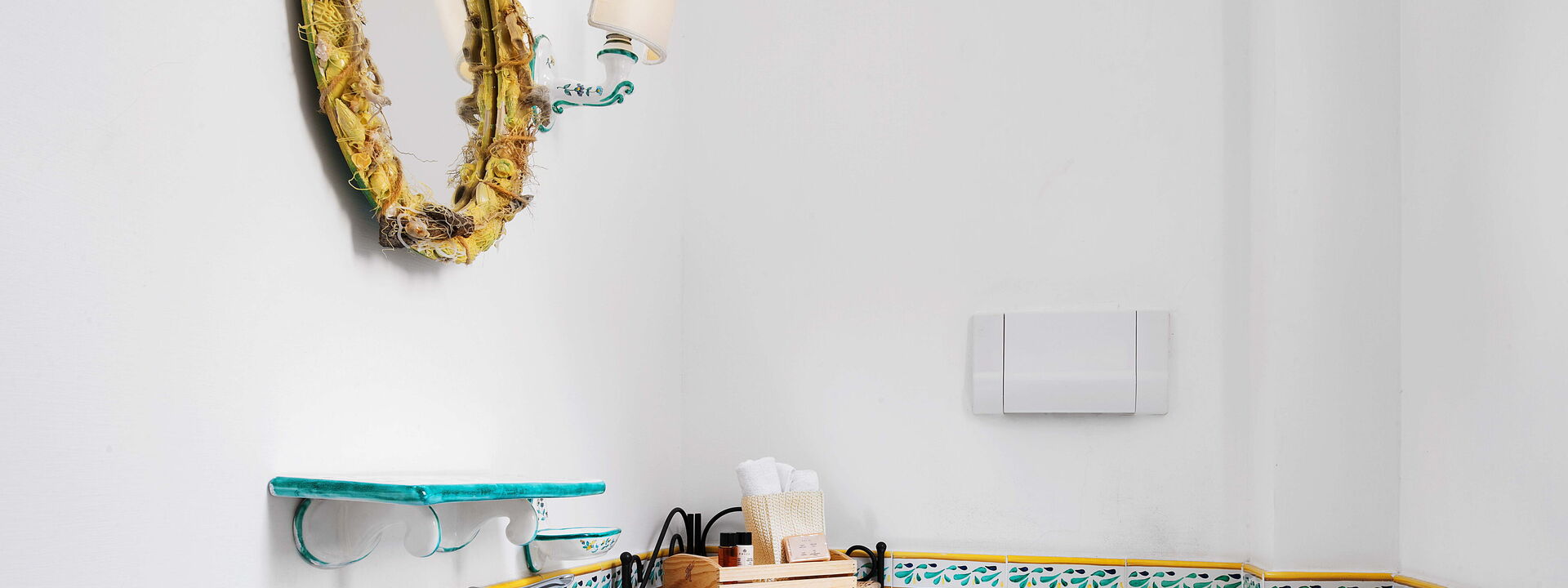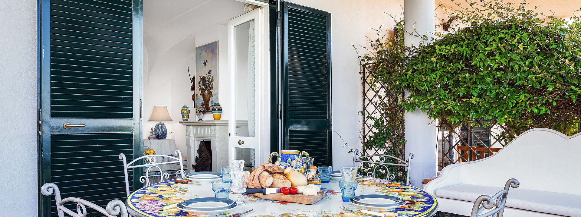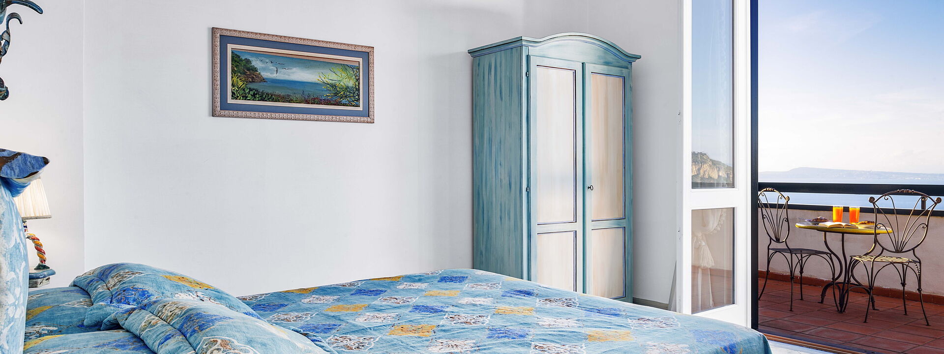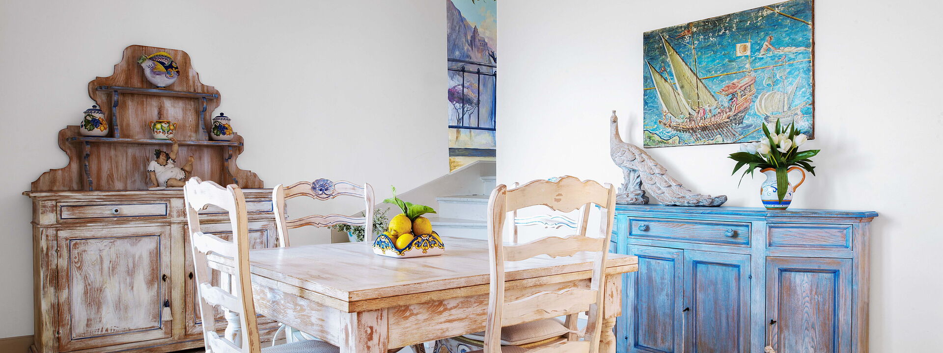 Salendo la scala fino al piano superiore, potrete ammirare il meraviglioso trompe l'oeil che rappresenta la bellezza della costa sorrentina.