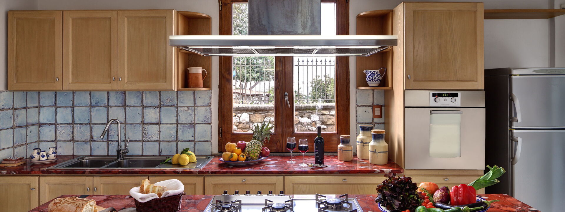 La grande cucina con panca ad isola è completamente attrezzata per lo chef accanito e comprende un piano cottura a gas a 6 fuochi, lavastoviglie, frigorifero e tutti gli utensili da cucina necessari. Adiacente alla cucina si trova un piccolo ambiente con lavatrice, ferro, asse da stiro e zona lavaggio.