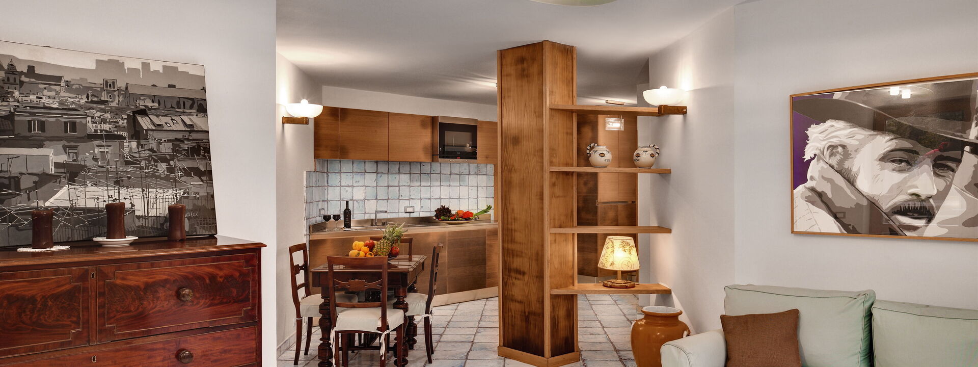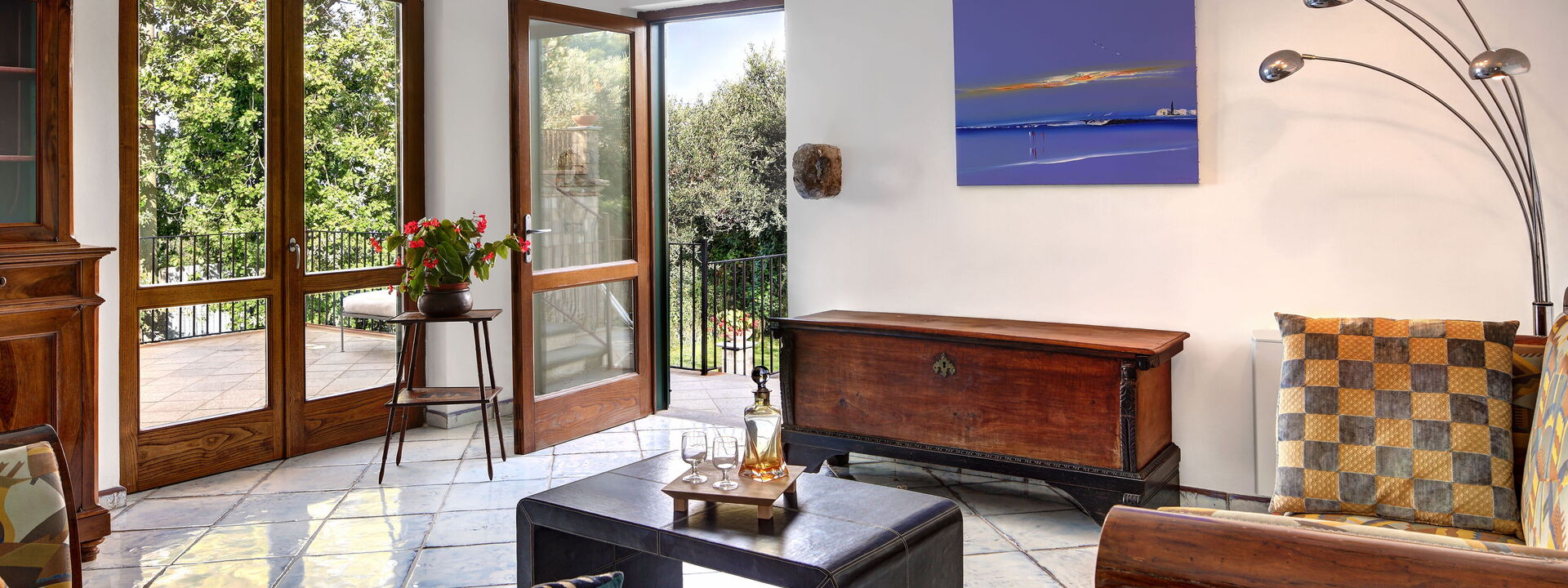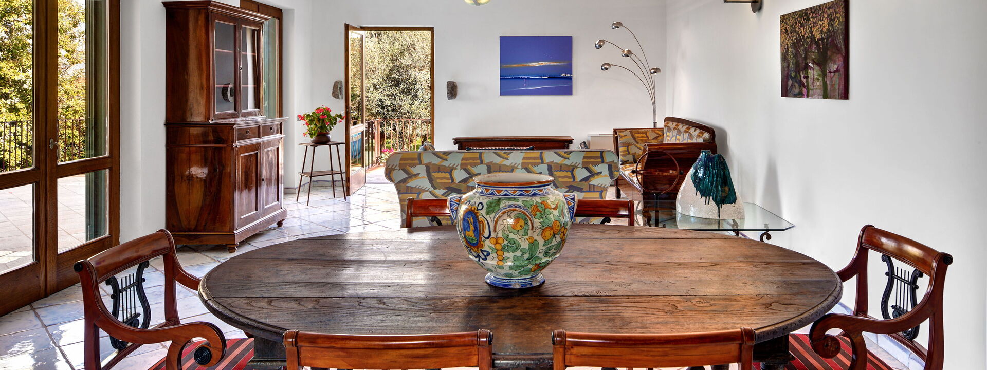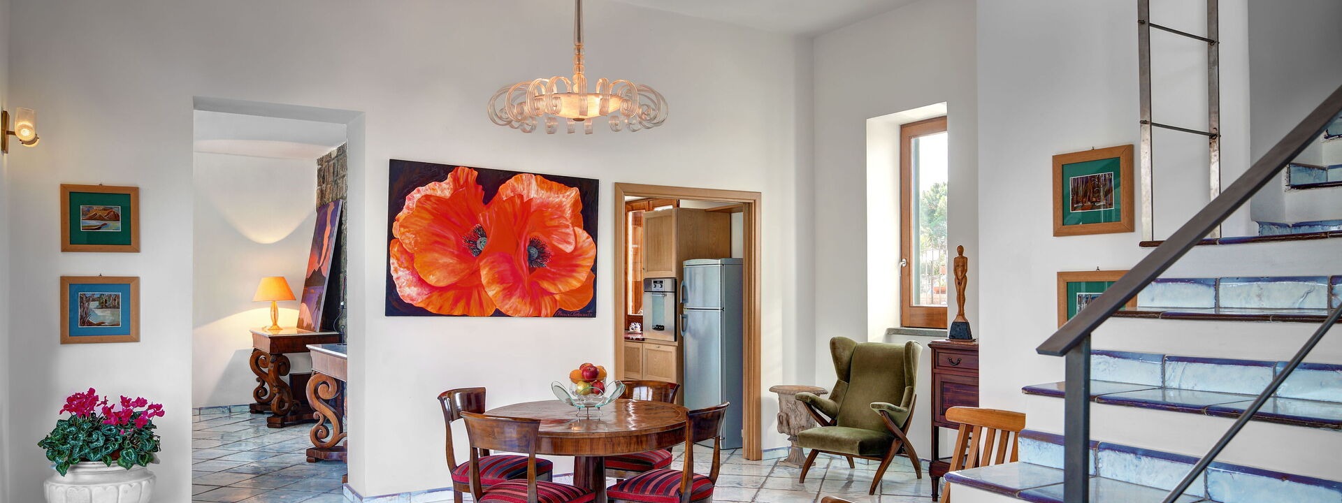 L'ingresso di Villa Vesuvio può essere paragonato a una galleria d'arte con i suoi superbi dipinti contemporanei e classici. La zona giorno e pranzo a pianta aperta sfocia in una terrazza privata soleggiata con vista mozzafiato sul Vesuvio. È la cornice perfetta per sorseggiare un cocktail mentre si assapora il tramonto sul Mediterraneo.