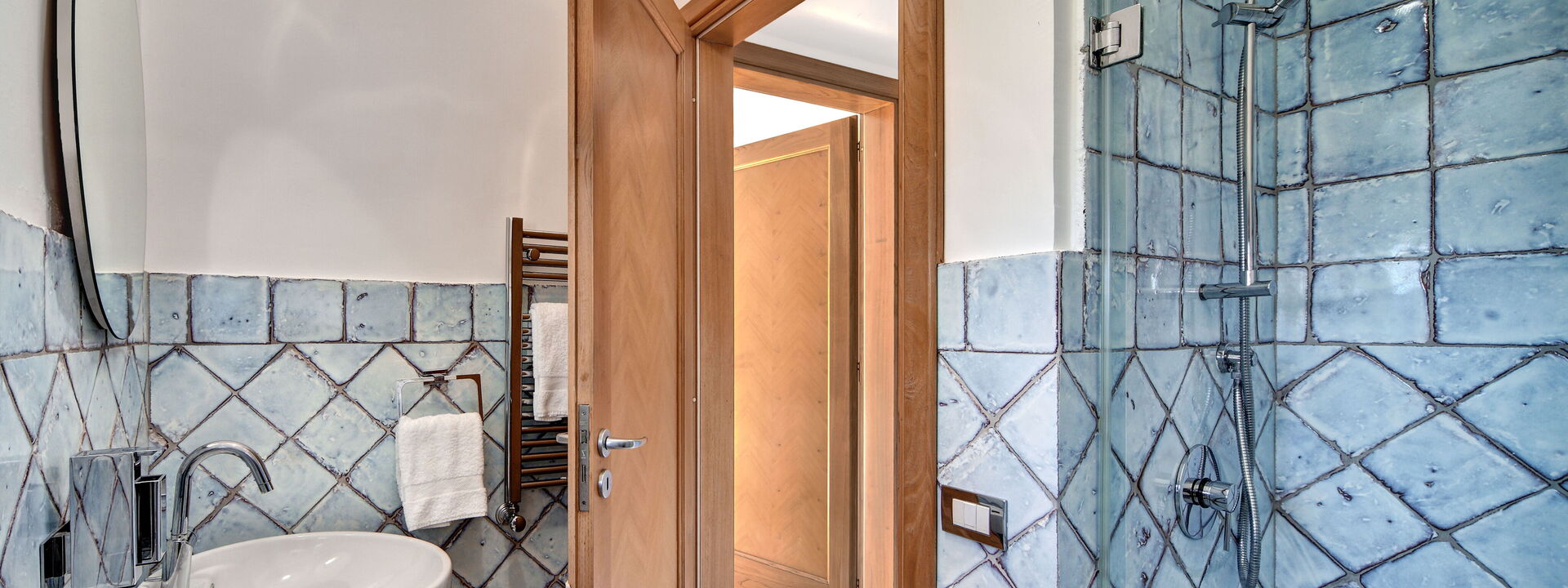 Al piano superiore della villa ci sono 3 camere da letto di buone dimensioni. La camera da letto principale offre un ampio guardaroba e dispone di un balcone Juliette con una vista spettacolare sul Vesuvio. C'è un ampio bagno con cabina doccia, lavabo, wc, bidet e asciugacapelli.