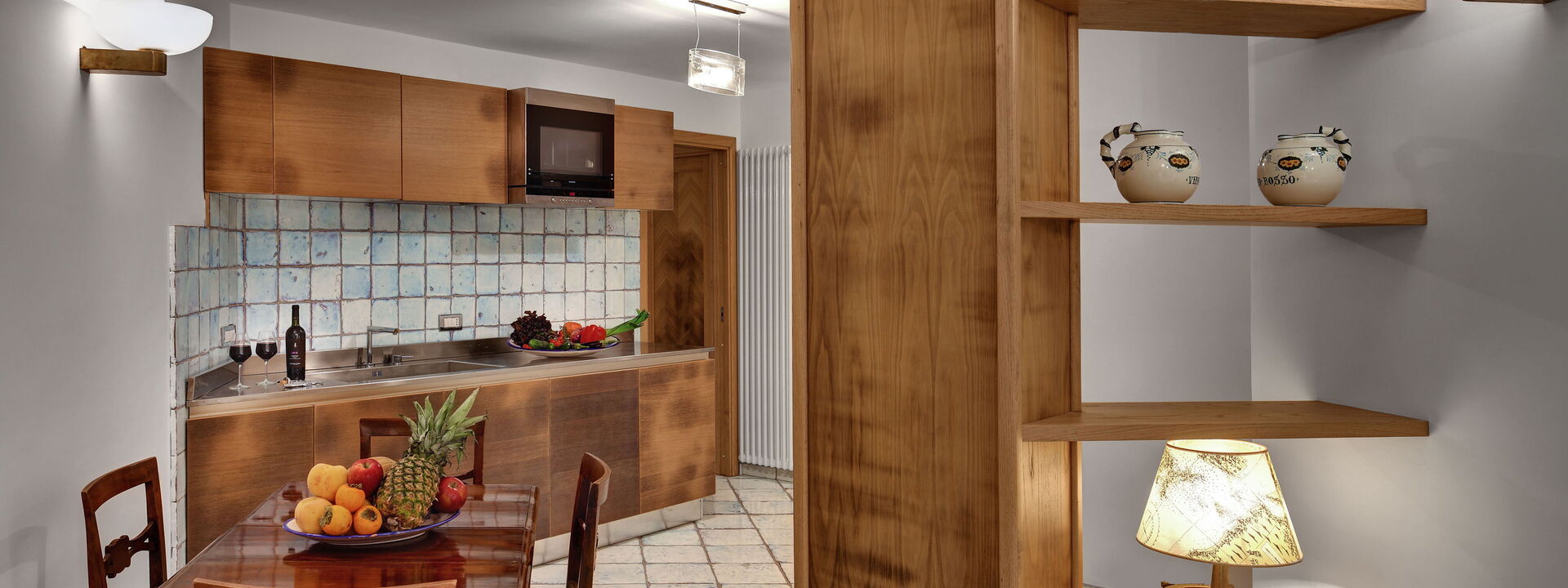 Situato al piano terra, con ingresso indipendente, è un appartamento trilocale autonomo. Comprende una zona soggiorno-pranzo a pianta aperta, una cucina completamente attrezzata, un'ampia camera matrimoniale con bagno privato e si apre su una veranda in giardino e una terrazza esterna. La seconda camera da letto è arredate con un ampio letto a castello su misura e ha un bagno separato.