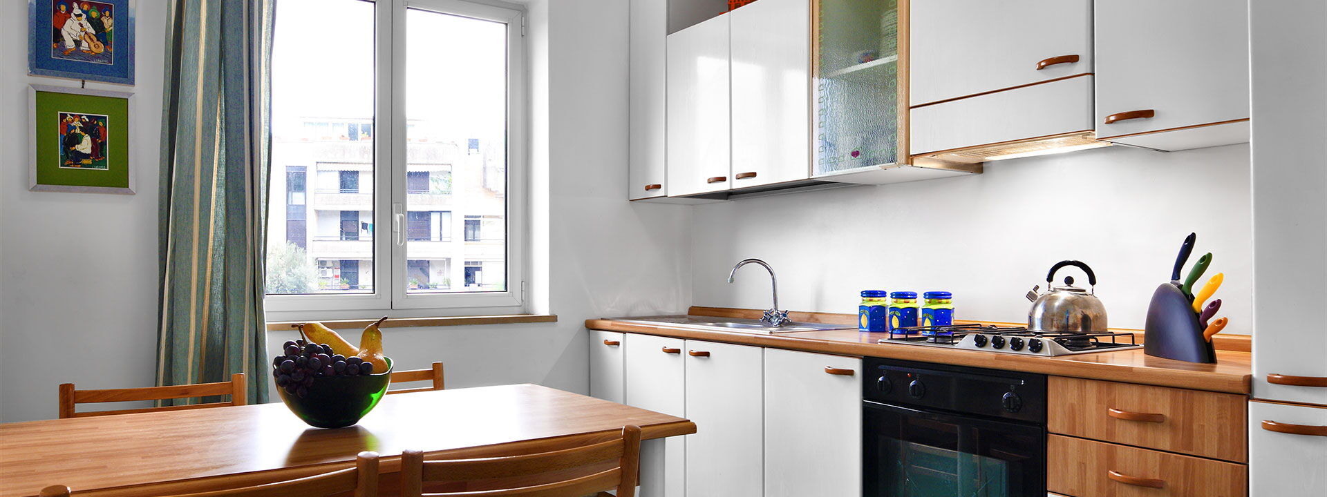 All’ingresso, si apre un luminoso e spazioso soggiorno caratterizzato da caldi pavimenti in legno e pareti bianche. L’area living comprende un comodo divano letto matrimoniale e due poltrone in pelle, perfette per rilassarsi guardando la televisione. Un tavolo da pranzo e un elegante mobile in legno completano lo spazio. È disponibile il Wi-Fi in tutto l’appartamento.