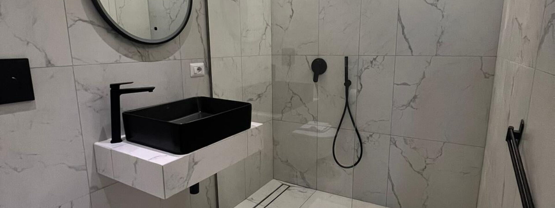 I due bagni moderni con piastrelle bianche dispongono entrambi di una spaziosa cabina doccia, lavabo, WC e asciugacapelli. Uno dei bagni è dotato di bidet, mentre l’altro include una lavatrice, asse e ferro da stiro per la tua comodità.