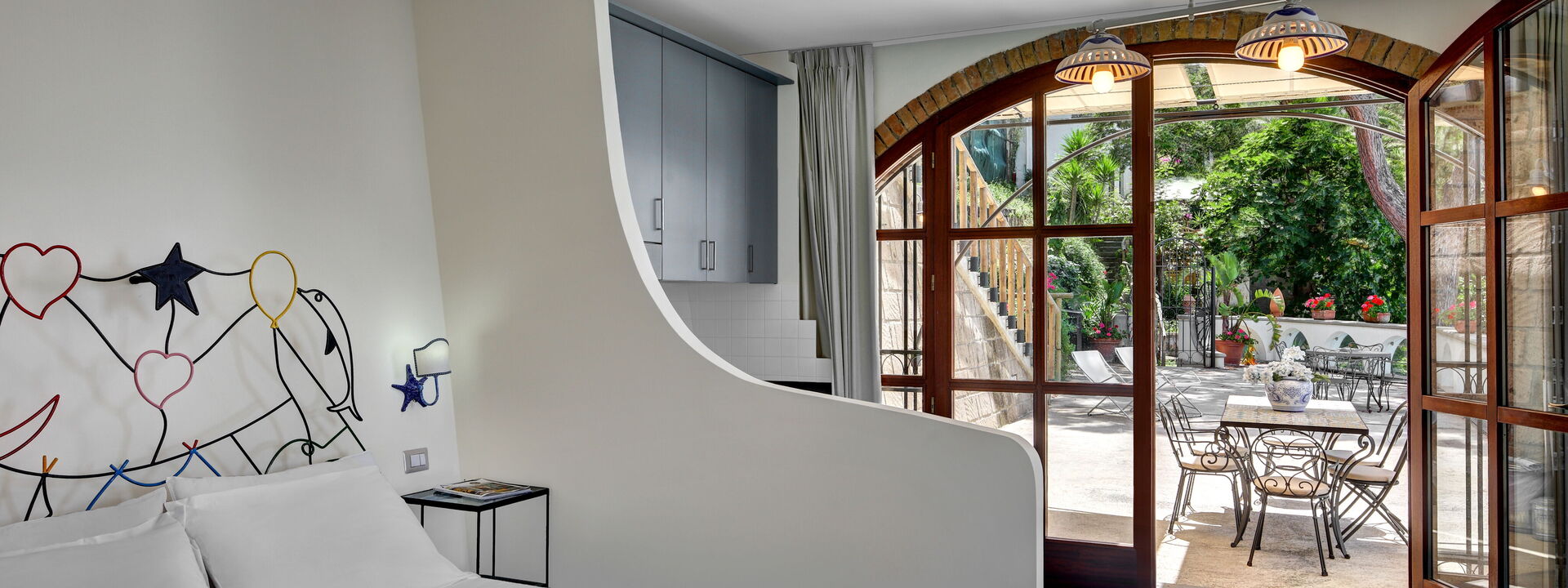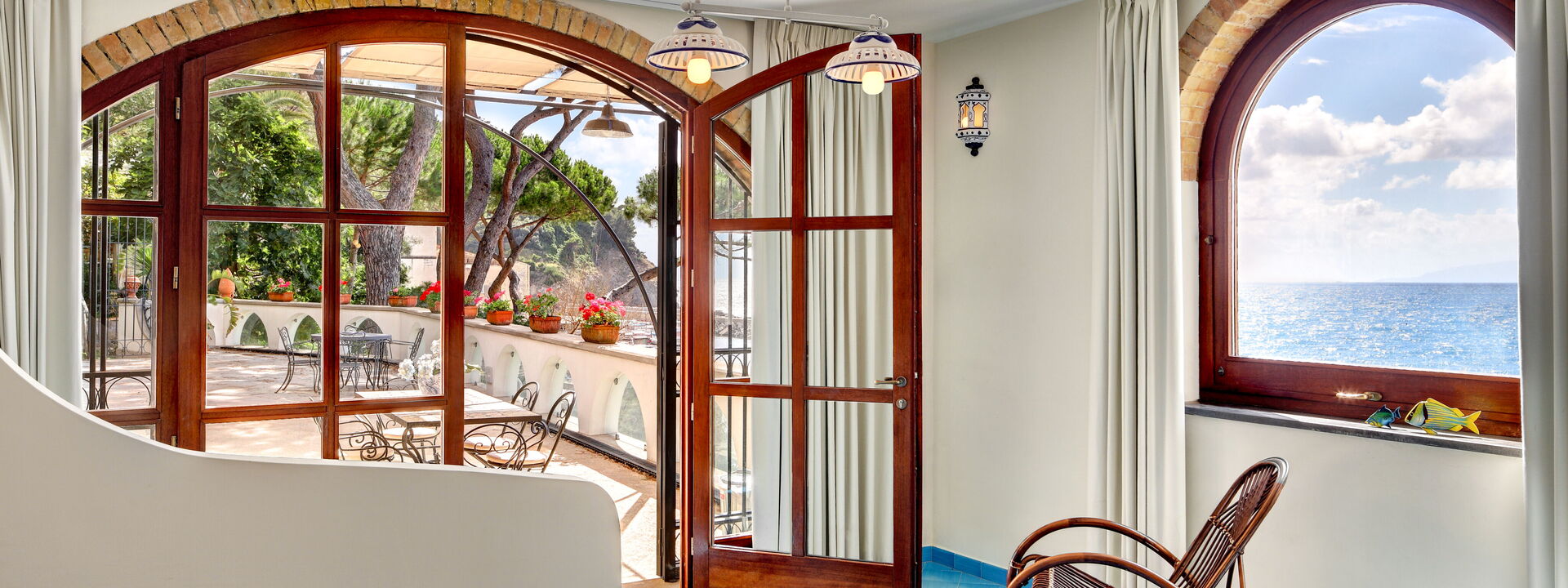 Comfortably accommodating two guests, the stunning terrace of Vera ed il Vervece overlooks the Mediterranean, close enough to taste the salt air and feel the sea breeze. Imagine relaxing with a glass of wine as the sun sets, the waters tinted crimson as far as the eye can see.