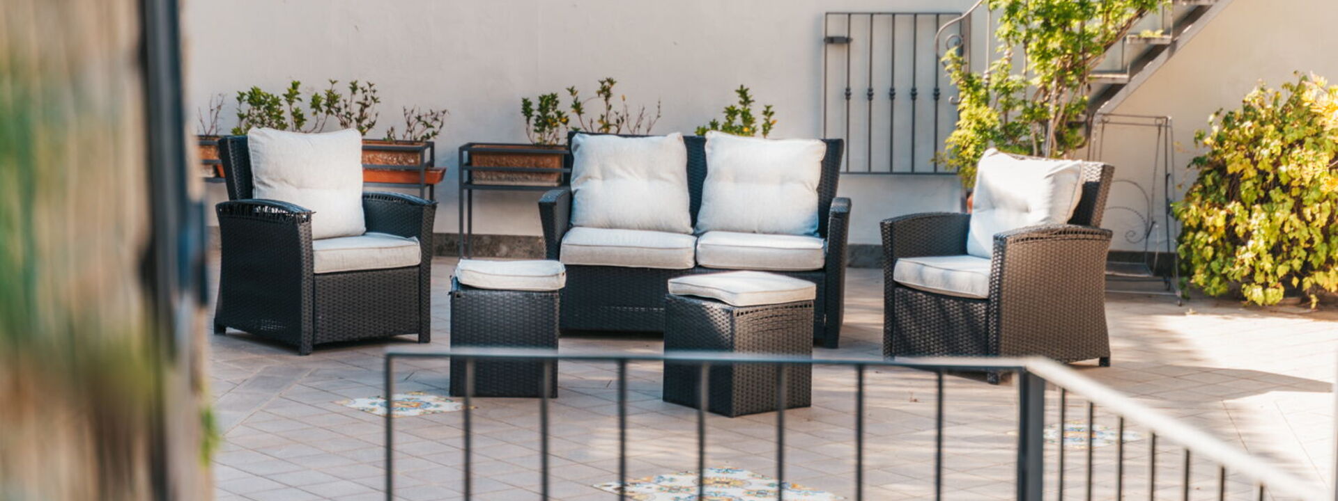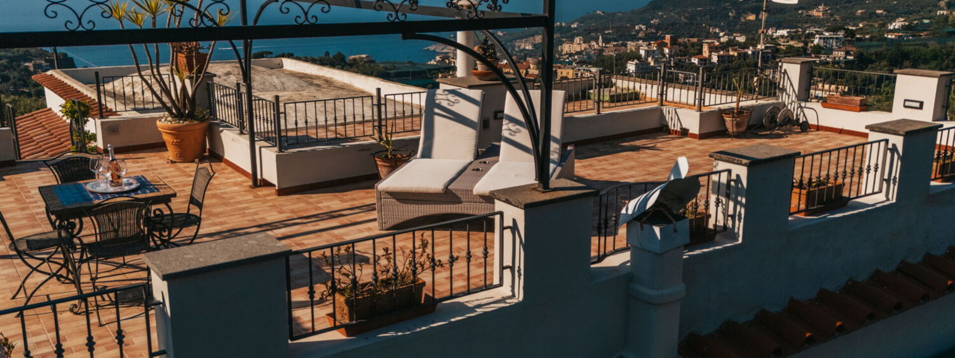 For those who love a good sunset or a quiet moment under the stars, the rooftop terrace is a true gem. Furnished with sun loungers, a gazebo, and cozy seating, it’s the perfect place to unwind with a glass of local wine while soaking in the panoramic views of the Gulf of Naples and the majestic Vesuvius.