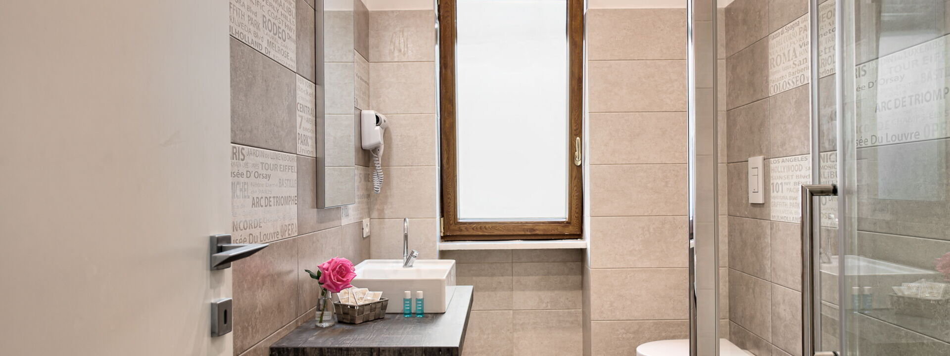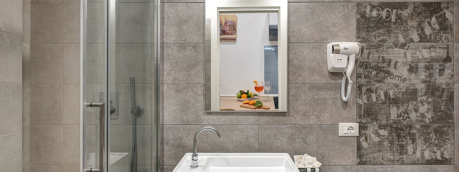 The newly renovated bathrooms offer a walk-in shower fitted with adjustable rain and handheld showerheads, modern design bidet and WC.